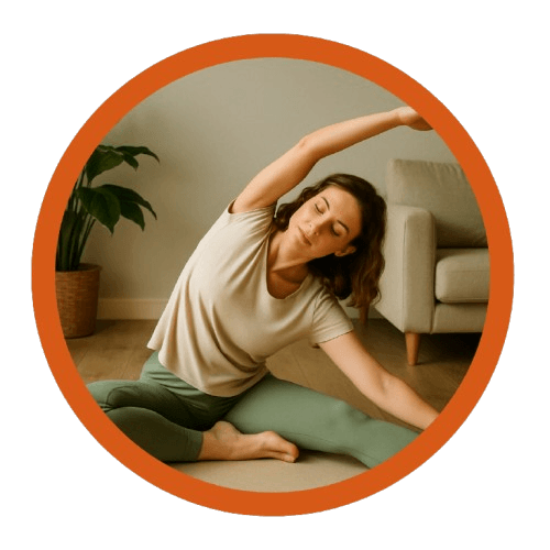 No es necesario entrenar fuerte, incluye movimientos suaves y conscientes que ayudan a liberar tensión y a bajar el cortisol, incluso si estás cansada o sin energía.
